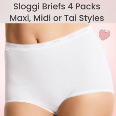 UNDERWEAR-RECOMMENDATIONSOur Sloggi briefs 4 packs are available in maxi, midi or tai styles in a choice of classic colours and a range of sizes. Unrivalled for comfort and perfect for everyday wear!