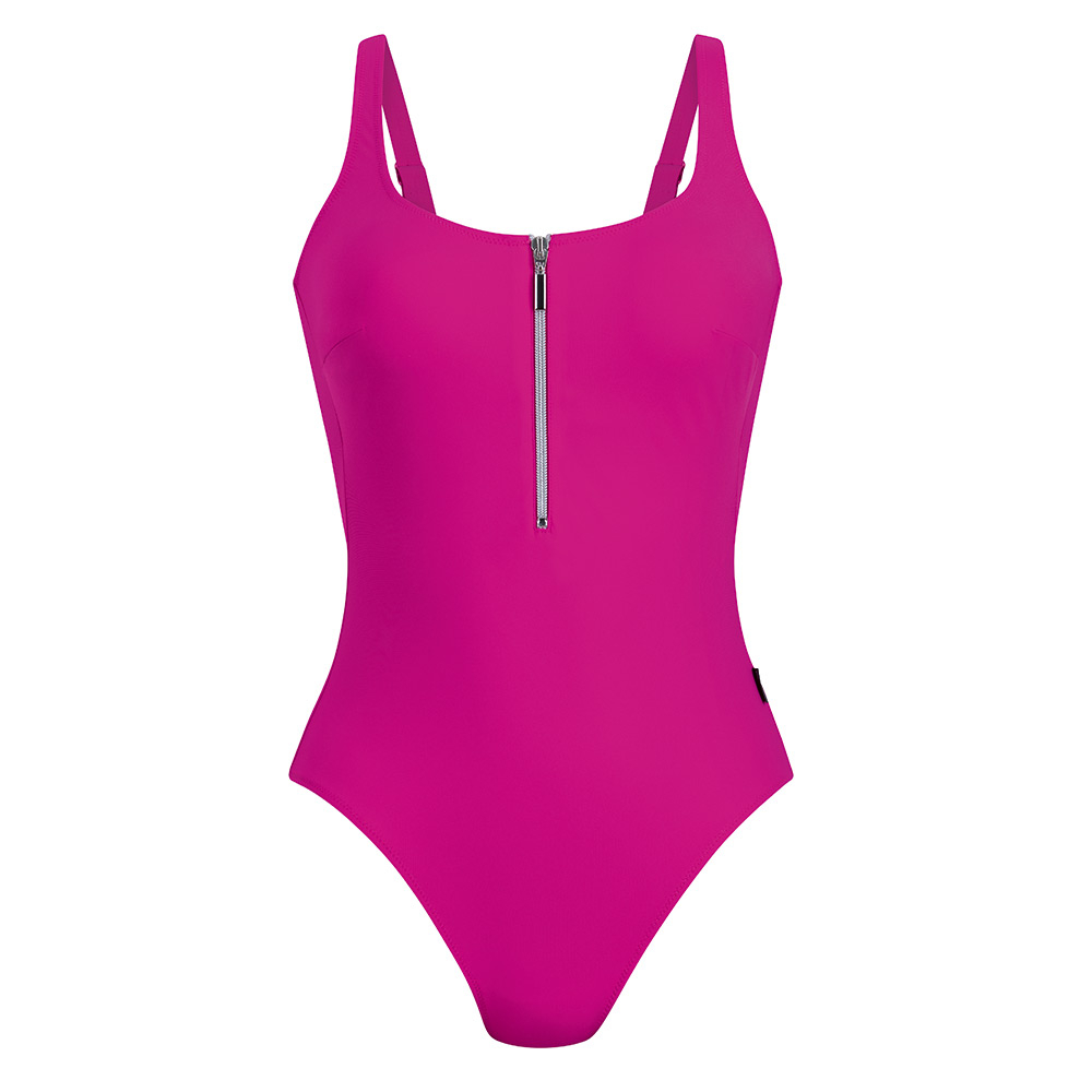 Elouise soft cup swimsuit by Anita Rosa Faia Swimwear. Essential soft cup one piece swimming costume in bra sizes, with eye-catching zip detail to the front for a customized design and an ease of dressing. A special bust lining provides comfort and support without the need for wires. Sporty look and modern high-tech blend of fibers in the fabric makes this swimwear perfect for swimming pool activities. The fabric is soft in touch, very light, hard wearing and breathable.