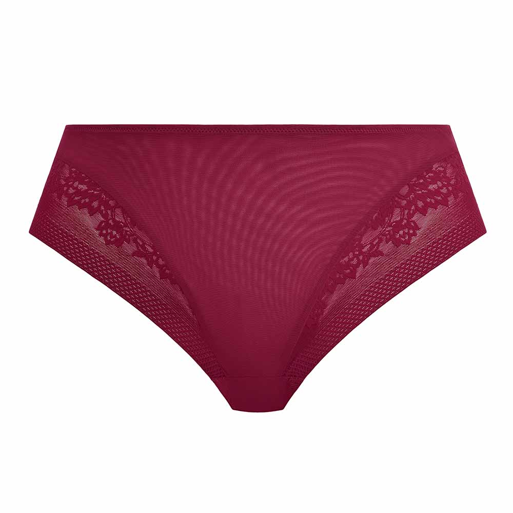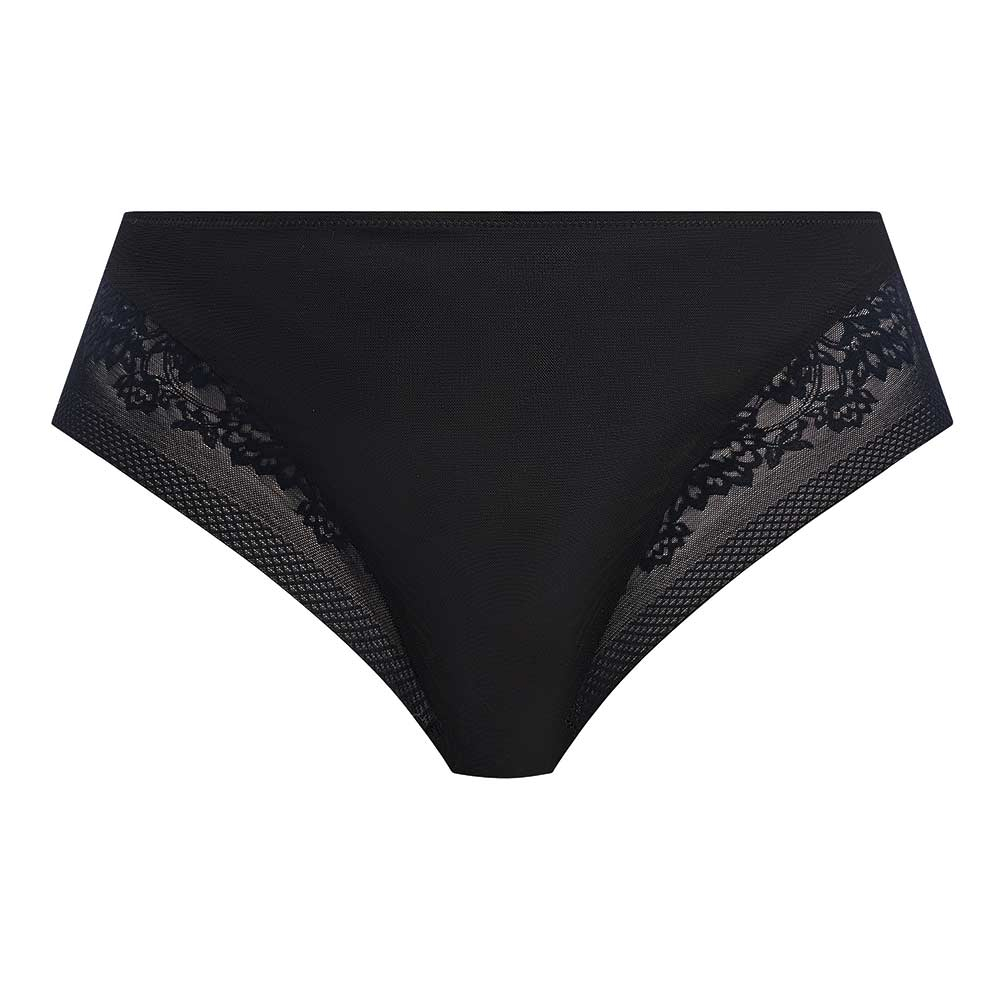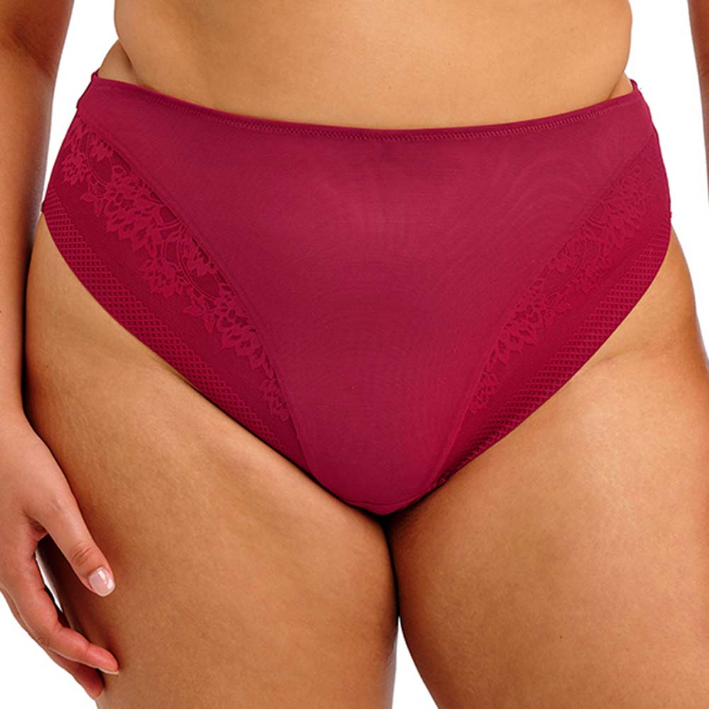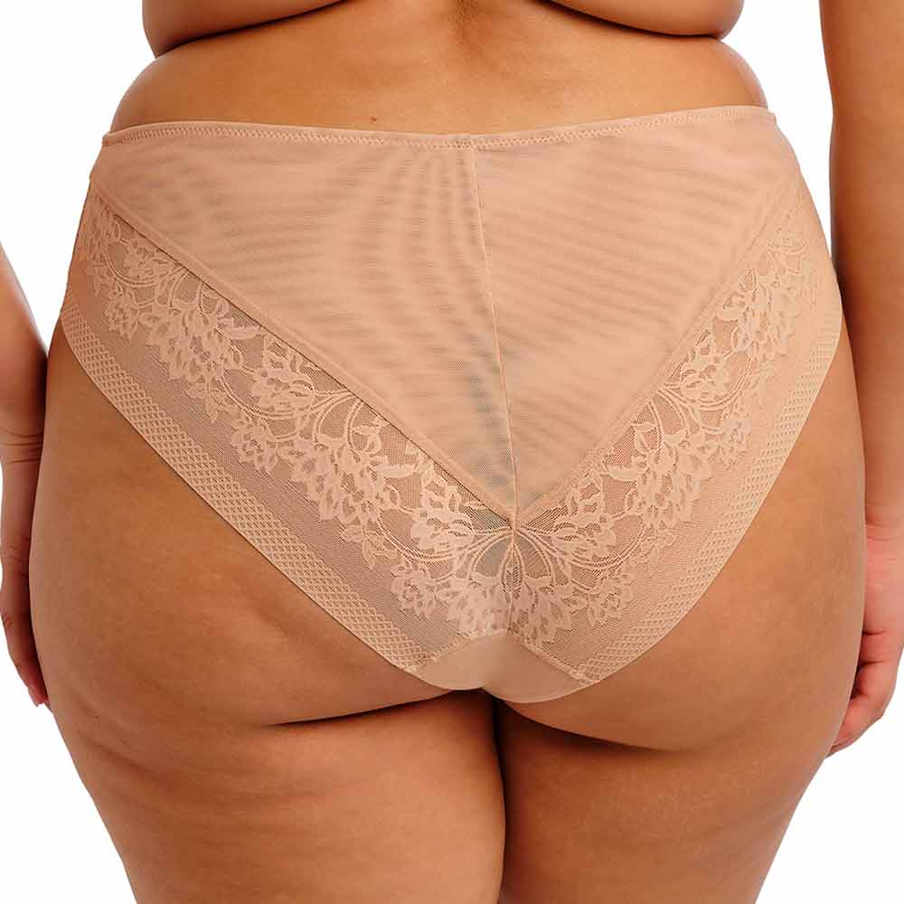 Nerina High Leg Full Briefs by Elomi Lingerie. Pretty full coverage ladies briefs made from lightweight, double layer stretch mesh fabric for comfort and modesty. Finished with seamless, stretch lace round the legs and back for a no VPL finish under close fitted clothes. Nerina is our new Elomi proposition for fuller bust for support and modern look.