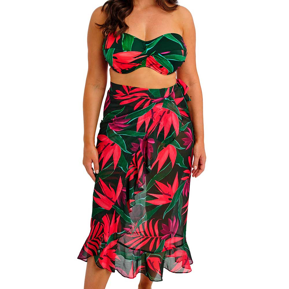 Pichola Underwired Bandeau Bikini Top by Fantasie Swimwear. Trendy strapless bikini top with underwired, lightly padded cups for shape and support. With twist front to flatter the bust shape. Comes with detachable scarf tie for halter neck option.