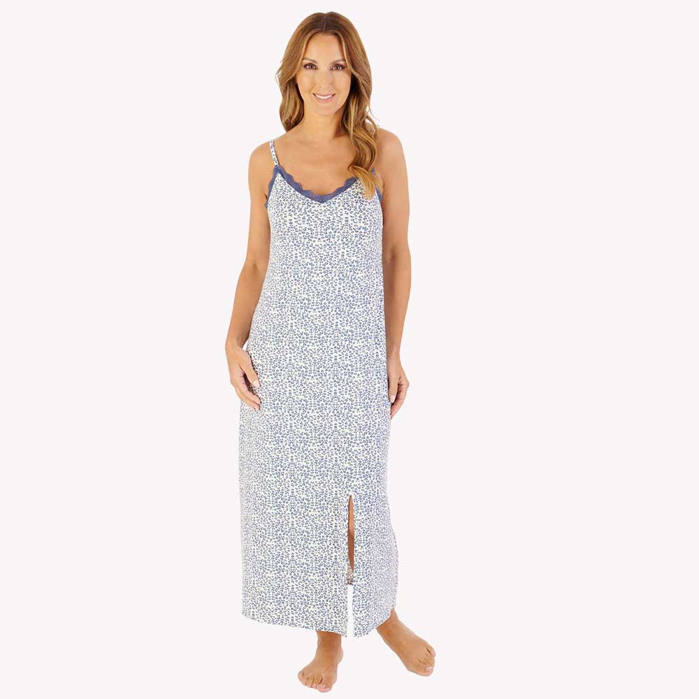 The Supersoft Leopard Print Spaghetti Strap 47 Inch Nightdress by Gaspe offers the perfect balance of comfort, elegance and modern style. Crafted from a very soft, lightly brushed fabric, it feels beautifully gentle against the skin while remaining lightweight and breathable, making it ideal for the warmer months.
