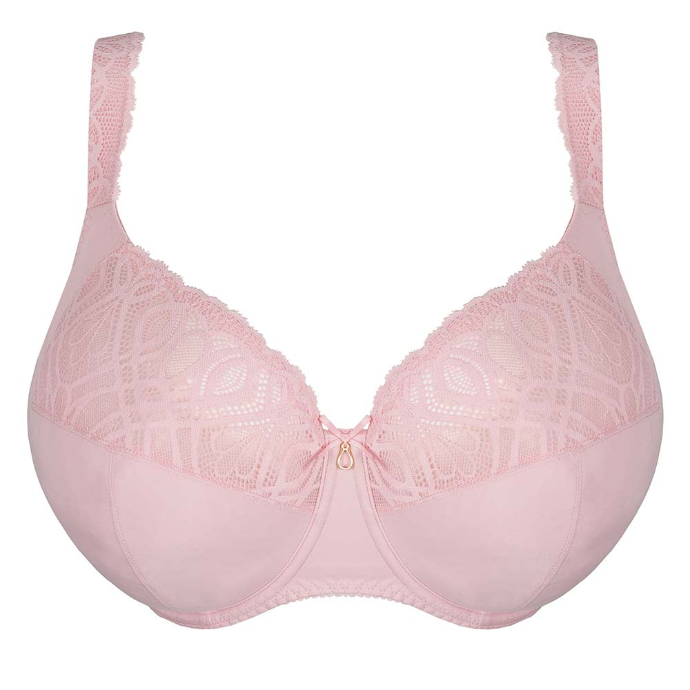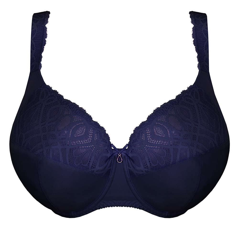 Salerno Underwired Fuller Bust Bra by PrimaDonna. Full coverage underwired bra made from strong fabric. With three section full cups and additional side panel for forward shape and support. Non-padded, non-transparent cups are decorated with slightly stretchy lace lined with tule fabric, for a great shape and trendy look.