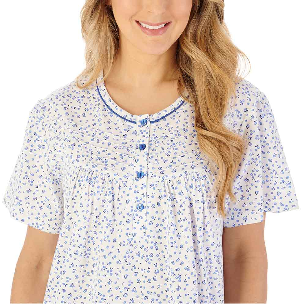 Enjoy comfort, warmth, and timeless style with the Anemone Short Sleeve Buttoned Top Cotton Nightdress by Slenderella. Crafted from soft, breathable 100% cotton jersey fabric, this nightdress offers gentle warmth - ideal for cooler nights and year round wear.