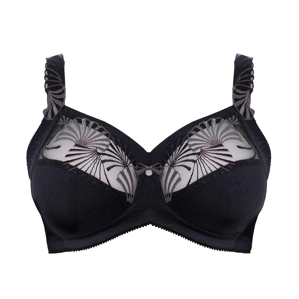 Emily Non Wired Bra by Ulla Dessous. Wirefree soft cup bra created for fuller bust support. With 3 section cups including firm side panel for good shape and forward projection. Perfect for heavier bust. With wide straps to add to the support. Made from kind to skin microfibre fabric and decorated with embroidered tulle at the top cup for a lighter look. Based on the long standing and loved by our customers Carmen Soft Cup bra code 2528.