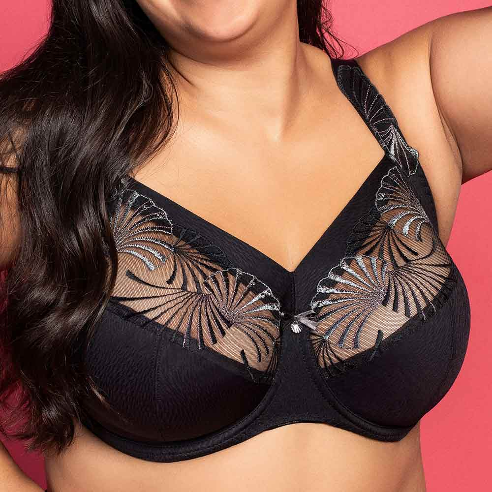 Underwired cups, Four sectioned cups including integrated side panel support, Extra panel to the top of the cups for greater cup depth, Full coverage, Fully adjustable thick straps for comfort and extra support